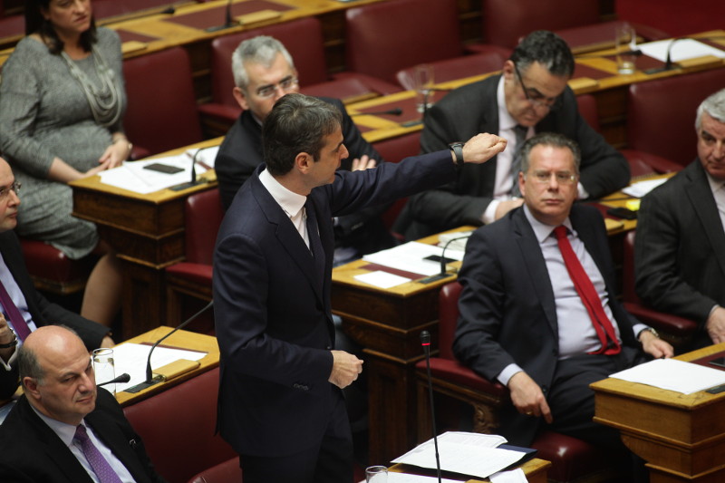 Παίρνοντας τον λόγο ο πρόεδρος της ΝΔ, δεν απάντησε στις εγκλήσεις Τσίπρα περί διαφθοράς. Προκάλεσε αίσθηση το γεγονός ότι δεν σήκωσε το γάντι που πέταξε ο Πρωθυπουργός και απέφυγε να στηρίξει την κυβέρνηση Σαμαρά στις κατηγορίες Τσίπρα. Αντιθέτως, ο Κυρ. Μητσοτάκης επέλεξε να αναφερθεί στο προσφυγικό και στις διαπραγματεύσεις της κυβέρνησης ΣΥΡΙΖΑ-ΑΝΕΛ.